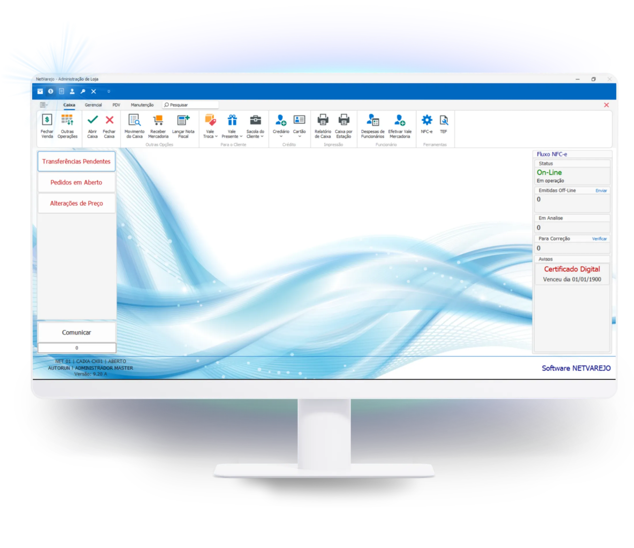 O NetVarejo integra PDV, estoque por grade, compras, financeiro, fiscal, cashback, cupons de desconto e integração com marketplaces em uma única plataforma, tudo sincronizado em tempo real.